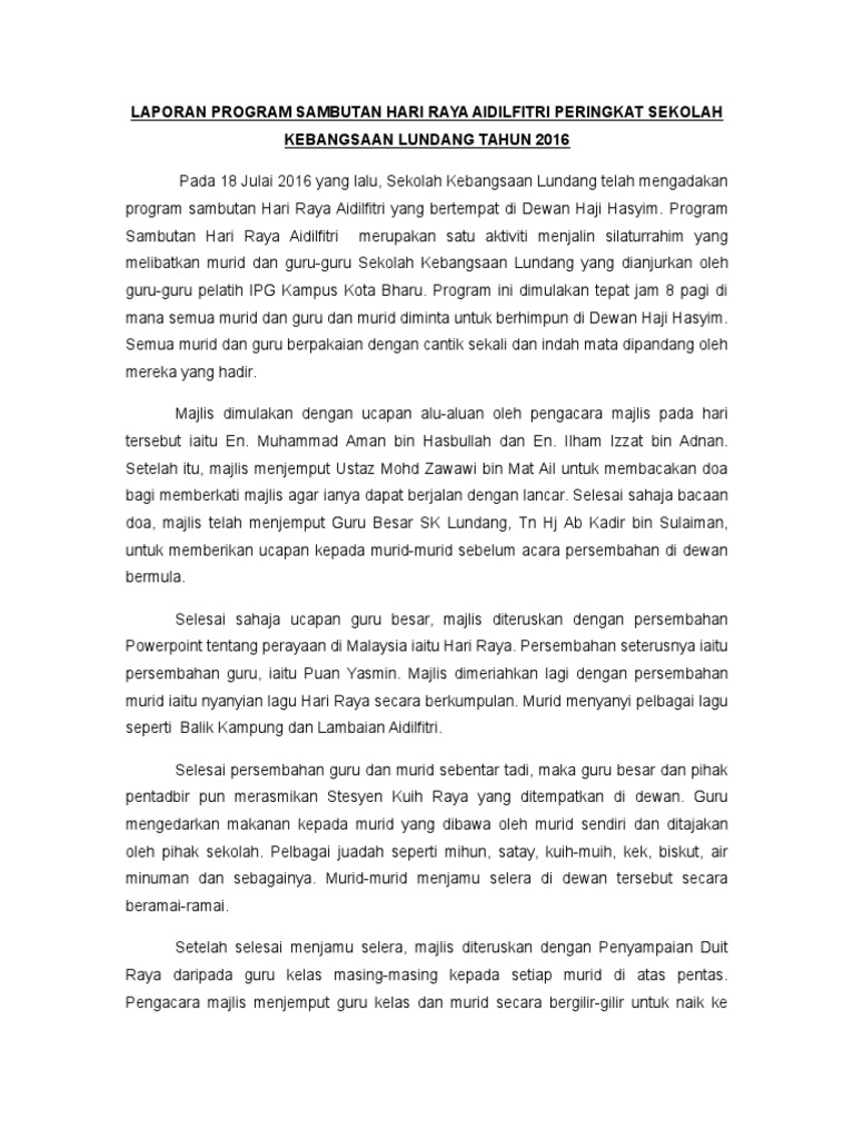 Laporan Sambutan Hari Raya Pdf